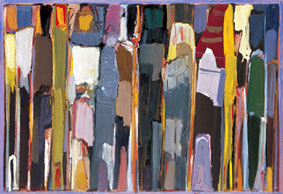 The dazzling stained-glass colors in his painting,