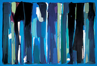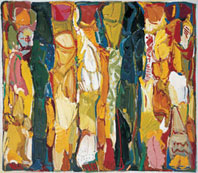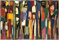 Today Guiragossian goes as far as transforming the bodies themselves into silhouettes, into columns of colors, but thanks to his outstanding talent these stelae can suggest all bodily shapes and movements, all their sadness.