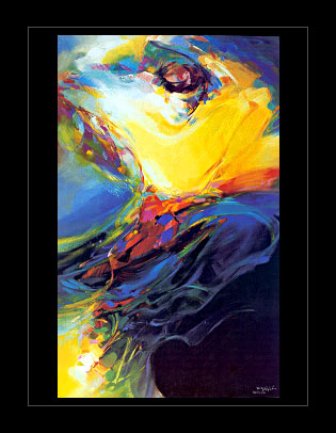 “Art is the shining sparkle reflecting the mind’s contribution. In abstract terms, art is a sea of fog whose secrets are unraveled whenever you sail against its waves or when you dive in it and touch its bed. To this day I am still crawling and anxiously trying to swim in the sea... Every time I clutch my brush, I venture into the world of the unknown, a journey during which I explore the secrets within myself. I proceed and gallantly move forward and with every step I grow to understand more about truth and freedom, innovation seems endless; It is then that artistic creation becomes an obsession."
